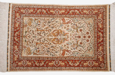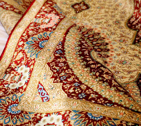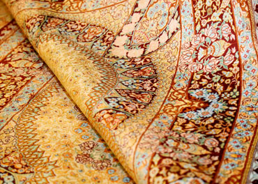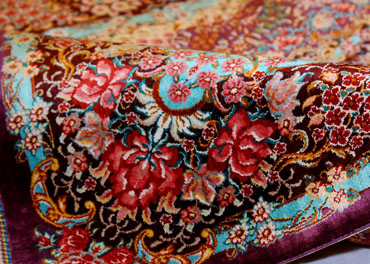 • The fabric of Qum carpet is made of pure silk and the exquisite Qum carpet is woven with delicate silk threads.