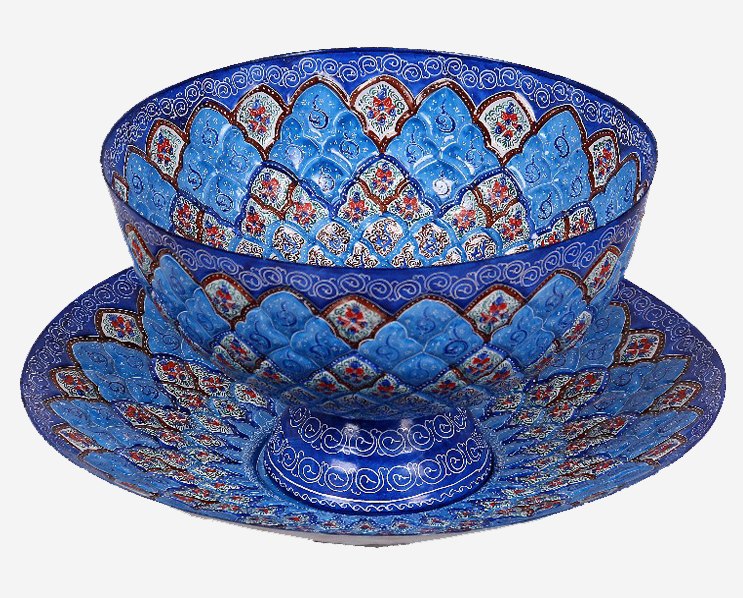 Enamellings is the art of painting, colorings and ornamenting the surface of metals by fusing over it brilliant colures that are decorated in an intricate design. Enamel working and decorating metals with colorful and baked coats is one of the distinguished courses of art in old Persian emperor. Mina is defined as some sort of glass-like colored coat which can be stabilized by heat on different metals particularly copper.
